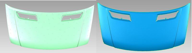在汽車個(gè)性化改裝中,利用手持三維掃描儀完整掃描全車3D數(shù)據(jù),將數(shù)據(jù)導(dǎo)入3D 設(shè)計(jì)軟件進(jìn)行寬體包圍設(shè)計(jì),利用3D打印技術(shù)進(jìn)行快速驗(yàn)證,最終采用玻璃鋼材質(zhì)制作成品的汽車改裝。