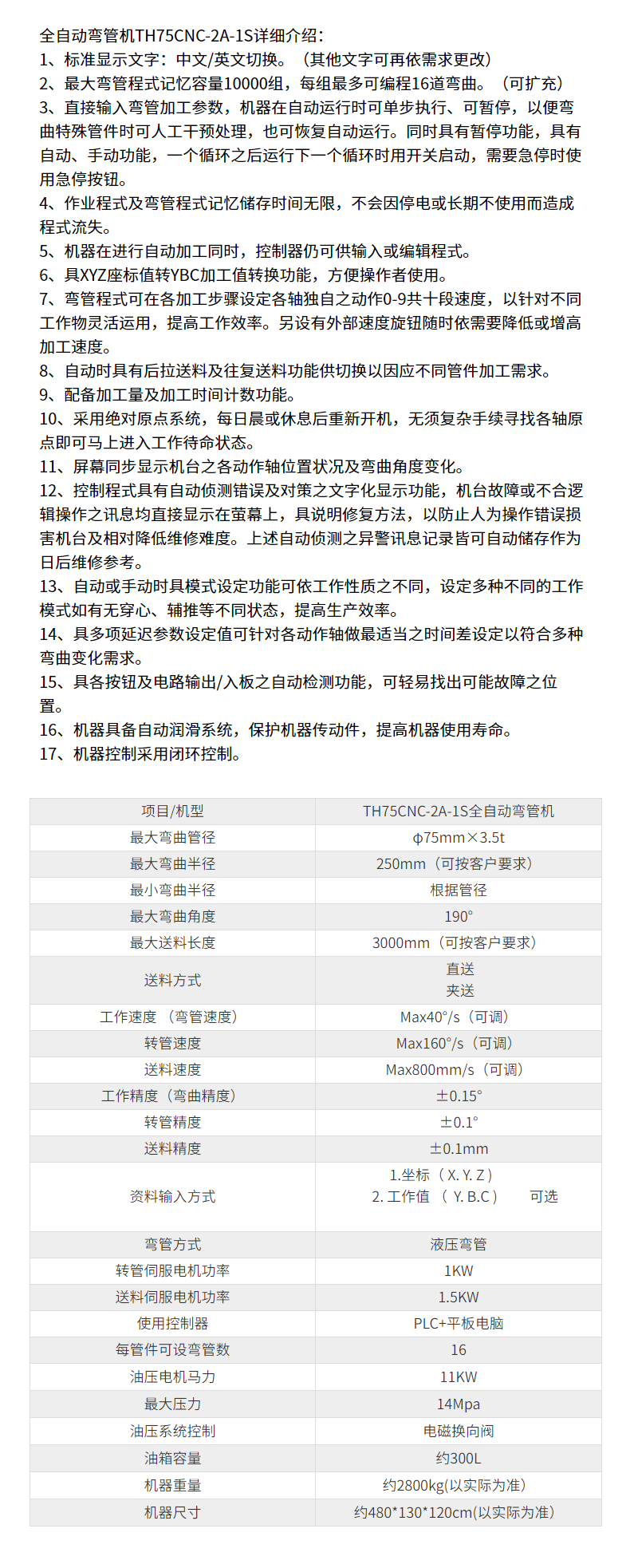75CNC3A1S全自動彎管機